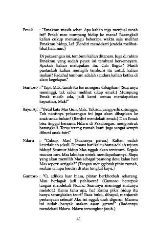 Guntoro : “Tapi, Mak, tanah itu harus segera dibagikan! (Suaranya