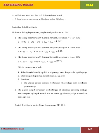 c. Jika Selang kepercayaan 99 % maka Derajat Kepercayaan = 1 - = 99%