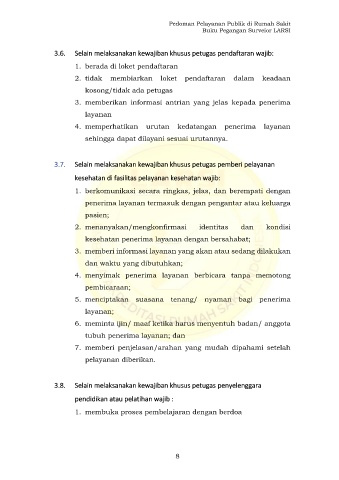 3.7. Selain melaksanakan kewajiban khusus petugas pemberi pelayanan