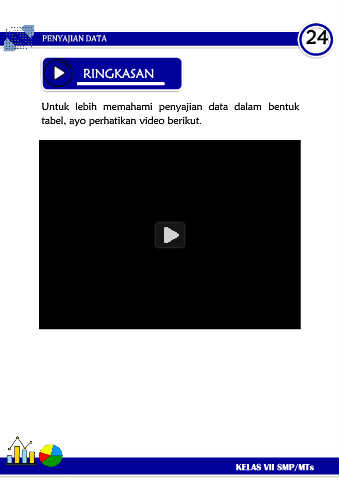 PENYAJIAN DATA 24 RINGKASAN Untuk lebih memahami penyajian data dalam bentuk tabel, ayo perhatikan video berikut. KELAS VII SMP/MTs