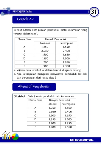 Berikut adalah data jumlah penduduk suatu kecamatan yang