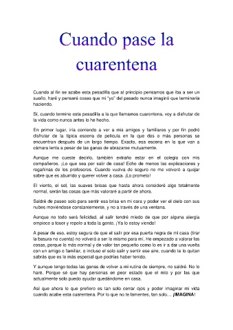 cuando acabe esta cuarentena. Por lo que no te lamentes, tan solo… ¡IMAGINA!