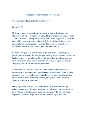 Me imagino que cuando todo esto pase podré salir afuera con