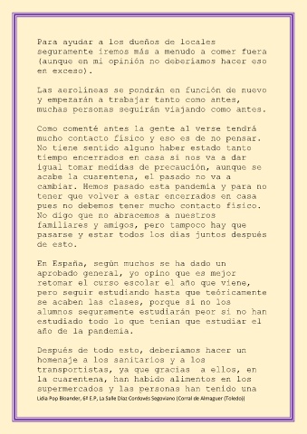 Lidia Pop Bloander, 6º E.P, La Salle Díaz Cordovés Segoviano (Corral de Almaguer (Toledo))