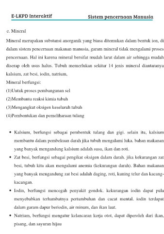 dalam sistem pencernaan makanan manusia, garam mineral tidak mengalami proses
