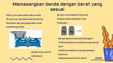 Ibu dan Lani membeli wortel di warung. Penjual wortel meletakkan 2 biji