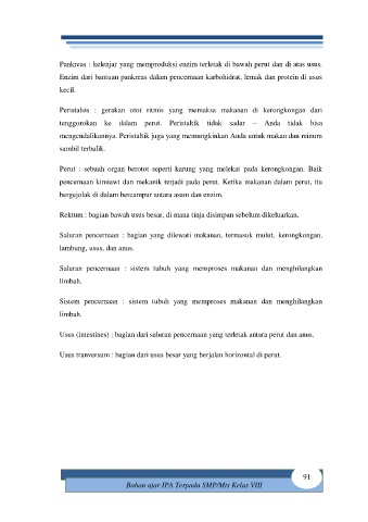 Saluran pencernaan : bagian yang dilewati makanan, termasuk mulut, kerongkongan,