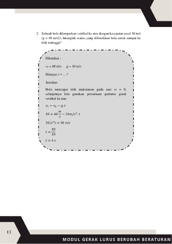 2. Sebuah bola dilemparkan vertikal ke atas dengan kecepatan awal 40 m/s