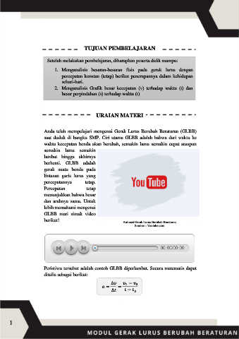 saat duduk di bangku SMP. Ciri utama GLBB adalah bahwa dari waktu ke