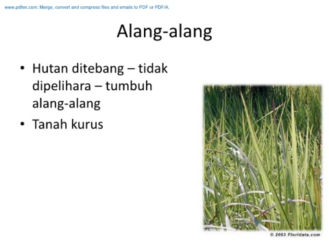 www.pdfen.com: Merge, convert and compress files and emails to PDF or PDF/A. Alang-alang • Hutan ditebang – tidak dipelihara – tumbuh alang-alang • Tanah kurus