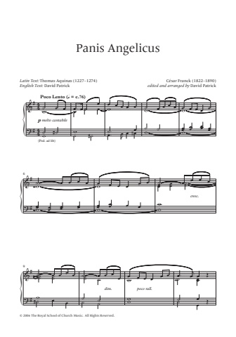 {{{%u00a9 2006 The Royal School of Church Music. All Rights Reserved.pmolto cantabilePoco Lento (q = c.76)cresc.6dim. poco rall.94444Latin Text: Thomas Aquinas (1 227%u20131 274)English Text: David PatrickC%u00e9sar Franck (1 822%u20131 890)edited and arranged by David PatrickPanis Angelicus?#(Ped. ad lib)#?#?# #%u02d9w %u0153 %u0153 %u0153%u0153. %u0153 %u02d9 %u0153%u0153 %u0153w %u0153 %u0153 %u0153 %u0153 %u02d9w %u0153 %u0153 %u0153 %u0153 %u0153w %u0153 %u0153 %u0153 %u0153%u02d9w #%u02d9 w%u02d9 #%u02d9 %u02d9.%u0153. %u0153J %u0153 %u0153%u0153 %u02d9w %u02d9 %u0153%u0153w %u0153%u0153 %u0153%u0153 %u0153%u0153%u02d9w %u0153 %u0153 %u0153 %u0153 %u0153w %u0153 %u0153 %u0153 %u0153 %u0153 %u02d9%u0153%u0153 %u0153%u0153 %u02d9%u02d9%u0153 %u0153 %u0153 %u0153%u0153%u0153w %u0153%u0153 %u0153%u0153 %u0153%u0153 %u0153%u0153w %u0153%u0153 %u0153 %u0153 ww%u02d9%u02d9%u02d9 %u02d9%u02d9%u0153 %u0153 %u0153 %u0153 %u02d9%u02d9%u02d9 %u02d9%u0153 %u0153 %u0153 %u0153 %u0153w %u0153 %u0153 %u0153 %u0153 %u0153 %u0153. %u02d9%u02d9 %u0153j %u0153%u0153%u0153 %u0152w%u02d9 %u0153 %u0153 %u02d9%u02d9 %u02d9%u02d9 ww %u02d9%u02d9 %u0153%u0153 %u0152