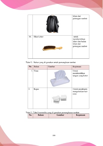 Tabel 3. Tabel kosmetika yang di gunakan pemangkasan rambut
