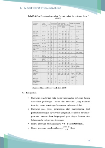 Tabel 3. 4 Cara Penentuan Jenis pahat, Geometri pahat, Harga V, dan Harga f