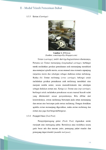 Pertama (a): Eretan memanjang (longitudinal carriage), berfungsi