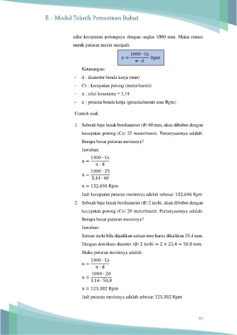nilai kecepatan potongnya dengan angka 1000 mm. Maka rumus