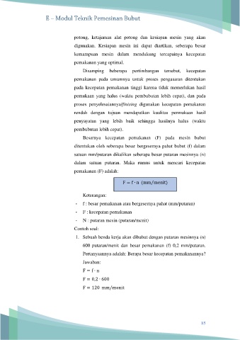 satuan mm/putaran dikalikan seberapa besar putaran mesinnya (n)