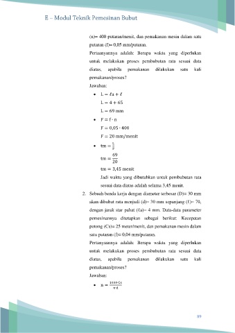 Jadi waktu yang dibutuhkan untuk pembubutan rata