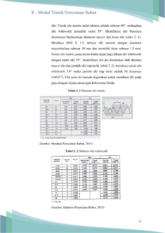 ulir. Untuk ulir metris sudut ulirnya adalah sebesar 60°, sedangkan
