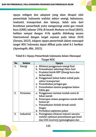 target NDC Indonesia dapat dilihat pada tabel 8.1 berikut.