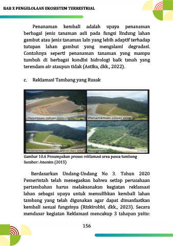 Gambar 10.6 Penampakan proses reklamasi area pasca tambang