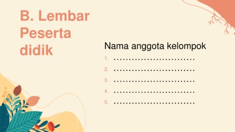 B. Lembar Peserta didik Nama anggota kelompok 1. ……………………… 2. ……………………… 3. ……………………… 4. ……………………… 5. ………………………