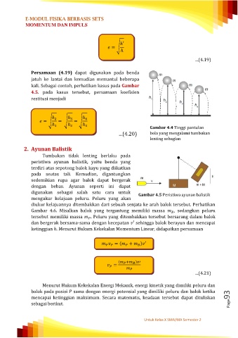 ketinggian ℎ. Menurut Hukum Kekekalan Momentum Linear, didapatkan persamaan