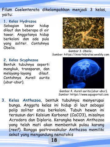 Filum Coelenterata dikelompokkan menjadi 3 kelas,