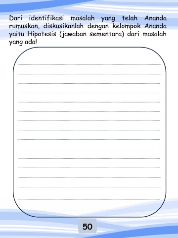 Dari identifikasi masalah yang telah Ananda rumuskan, diskusikanlah dengan kelompok Ananda yaitu Hipotesis (jawaban sementara) dari masalah yang ada! 50