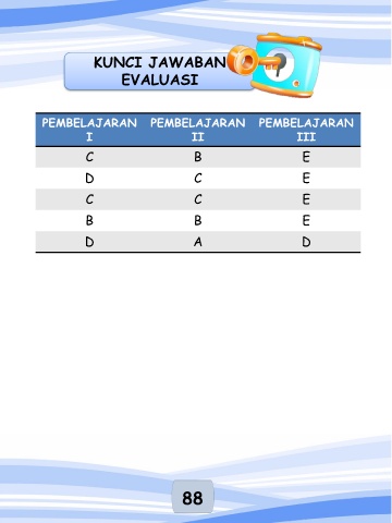 KUNCI JAWABAN EVALUASI PEMBELAJARAN PEMBELAJARAN PEMBELAJARAN I II III C B E D C E C C E B B E D A D 88