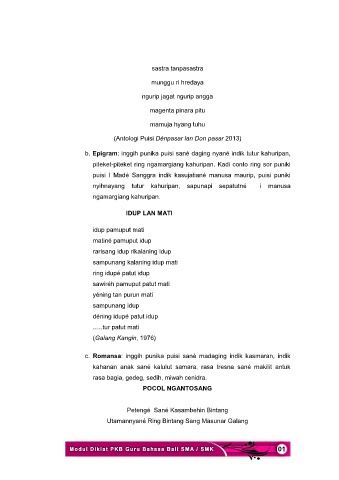 b. Epigram: inggih punika puisi sané daging nyané indik tutur kahuripan,