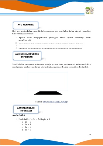 1. Apakah dalam mengoperasikan pembagian bentuk aljabar variabelnya harus