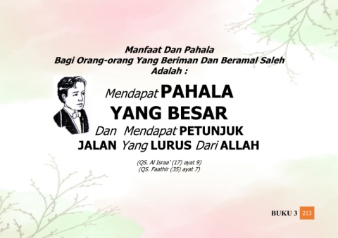 Manfaat Dan Pahala Bagi Orang-orang Yang Beriman Dan Beramal Saleh Adalah : PAHALA Mendapat YANG BESAR PETUNJUK Dan Mendapat JALAN Yang LURUS Dari ALLAH (QS. Al Israa’ (17) ayat 9) (QS. Faathir (35) ayat 7) BUKU 3 213
