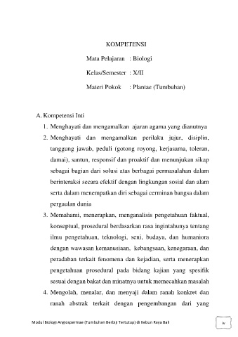 Modul Biologi Angiospermae (Tumbuhan Berbiji Tertutup) di Kebun Raya Bali                      iv