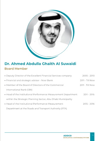 • Member of the Abu Dhabi Tawteen Board of Directors 2005 - 2009 • Head of the Institutional Performance Measurement Department 2011 - 2015