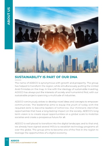 Arab Emirates on the map. In line with the ideology of sustainable investing,                               care facilities, partnerships with educational         I’d like to say that ADDCO has left its foot-