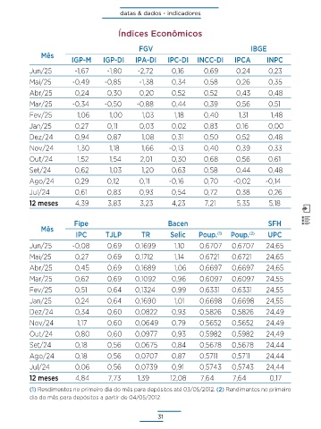 IPC TJLP TR Selic Poup. (1) Poup. (2) UPC