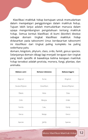 dalam mempelajari penggolongan dalam makhluk hidup.