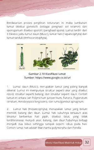2. Lumut hati (Hepaticophyta), merupakan lumut yang belum
