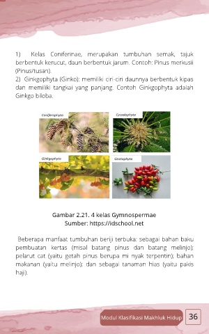 1) Kelas Coniferinae, merupakan tumbuhan semak, tajuk