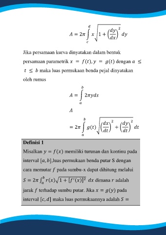 interval [ , ],luas permukaan benda putar S dengan