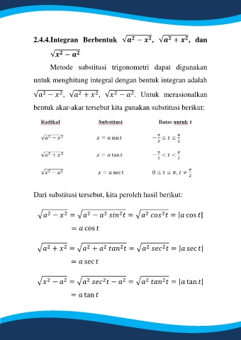 2.4.4.Integran Berbentuk √ − , √ + , dan