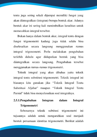 akan diintegralkan (integran) berupa bentuk akar. Adanya
