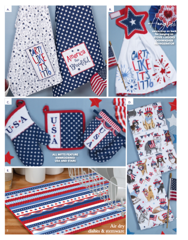 A. B. 2 C. D. E. 2 Air dry dishes & stemware velcro loop on back for hanging on STOVE • HOOKS DISHWASHER REFRIGERATOR ALL MITTS FEATURE EMBROIDERED USA AND STARS
