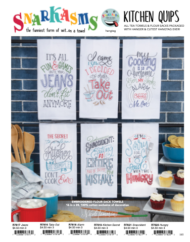 KITCHEN QUIPS ALL TEA TOWELS & FLOUR SACKS PACKAGED WITH HANGER & CUTEST HANGTAG EVER!