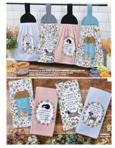 WORDING IS THE SAME AS DUAL PURPOSE TOWELS BELOW C. velcro loop on backside for hanging on kitchen handles STOVE • DISHWASHER • REFRIGERATOR • HOOKS OVERSIZED 18 in x 28 in D. 19