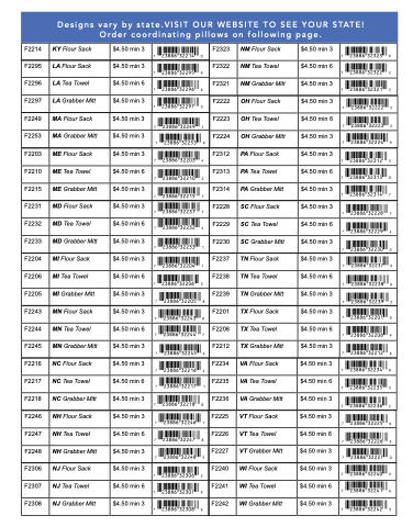 Designs vary by state.VISIT OUR WEBSITE TO SEE YOUR STATE! Order coordinating pillows on following page.