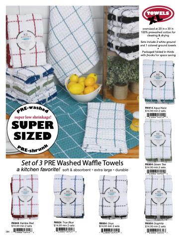 Sets include 2 white ground and 1 colored ground towels •