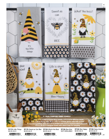 R7176 Sweet as Can Bee R7150 What’s the Buzz R7156 Bee Kind R7160 Bee Happy $4.50 min 6 $4.50 min 6 NOT AVAILABLE $4.50 min 6