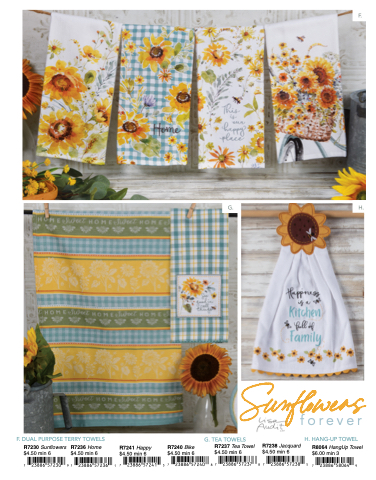 F. DUAL PURPOSE TERRY TOWELS R7230 Sunflowers R7236 Home $4.50 min 6 $4.50 min 6