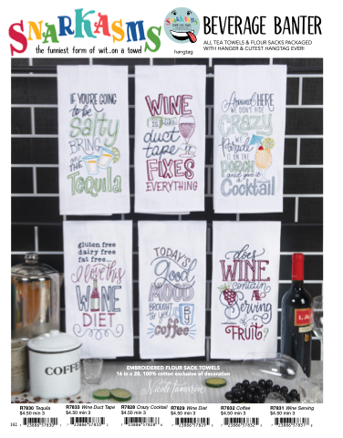 BEVERAGE BANTER ALL TEA TOWELS & FLOUR SACKS PACKAGED WITH HANGER & CUTEST HANGTAG EVER!